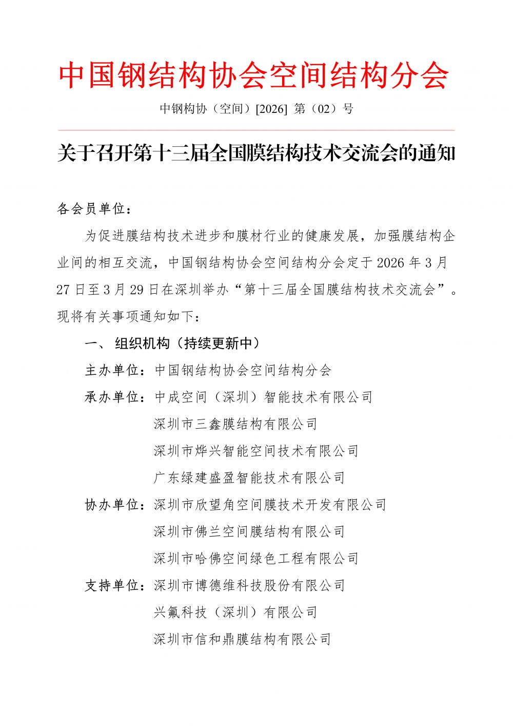 关于召开第十三届全国膜结构技术交流会的通知